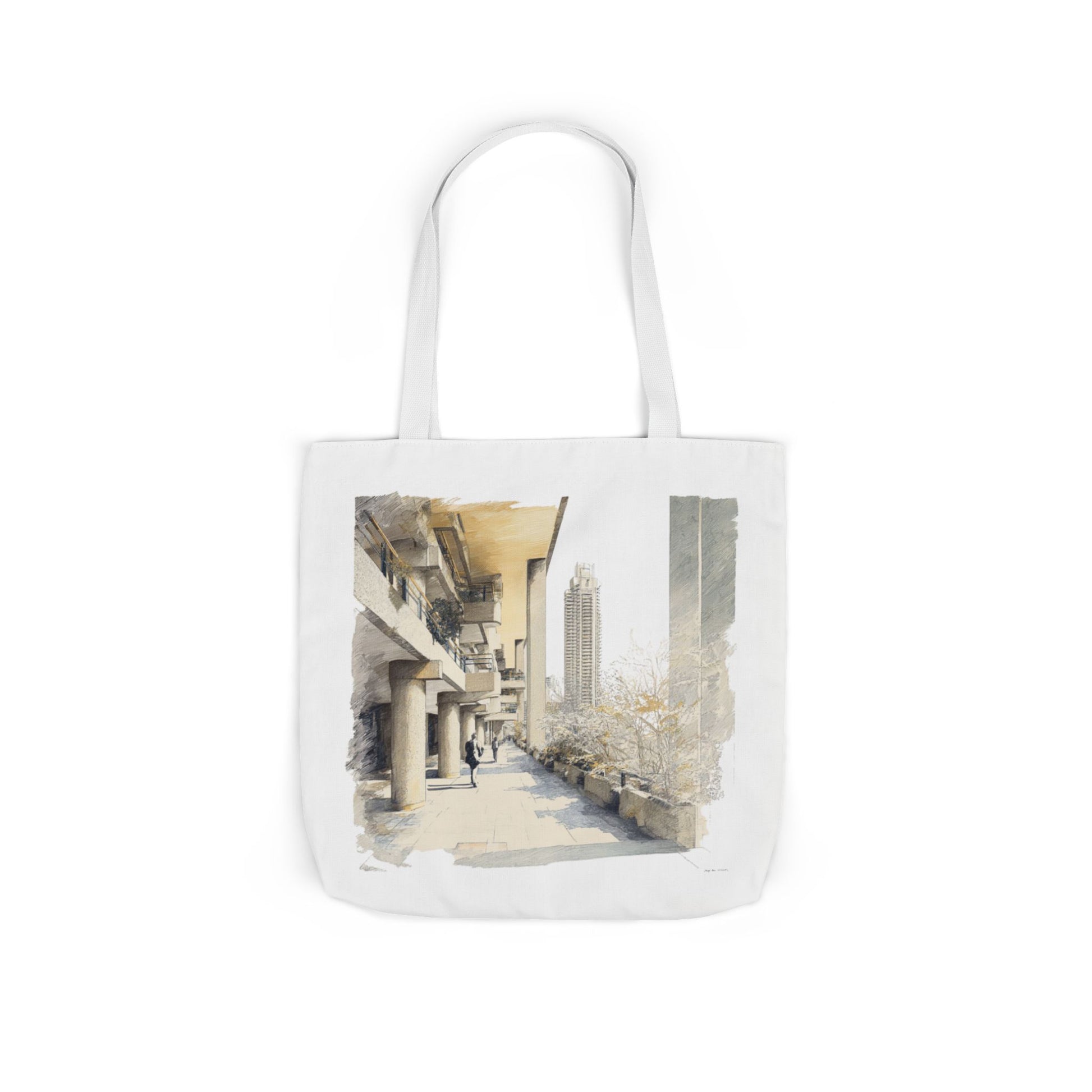 It is an original line drawing, not a photo, designed with plenty of negative space so the scene feels as open as the terrace itself. For people who love the Barbican’s blend of concrete, water, and shared public space, this tote offers a quiet reminder of time spent by the lake—carried with you on commutes, errands, and weekend walks.